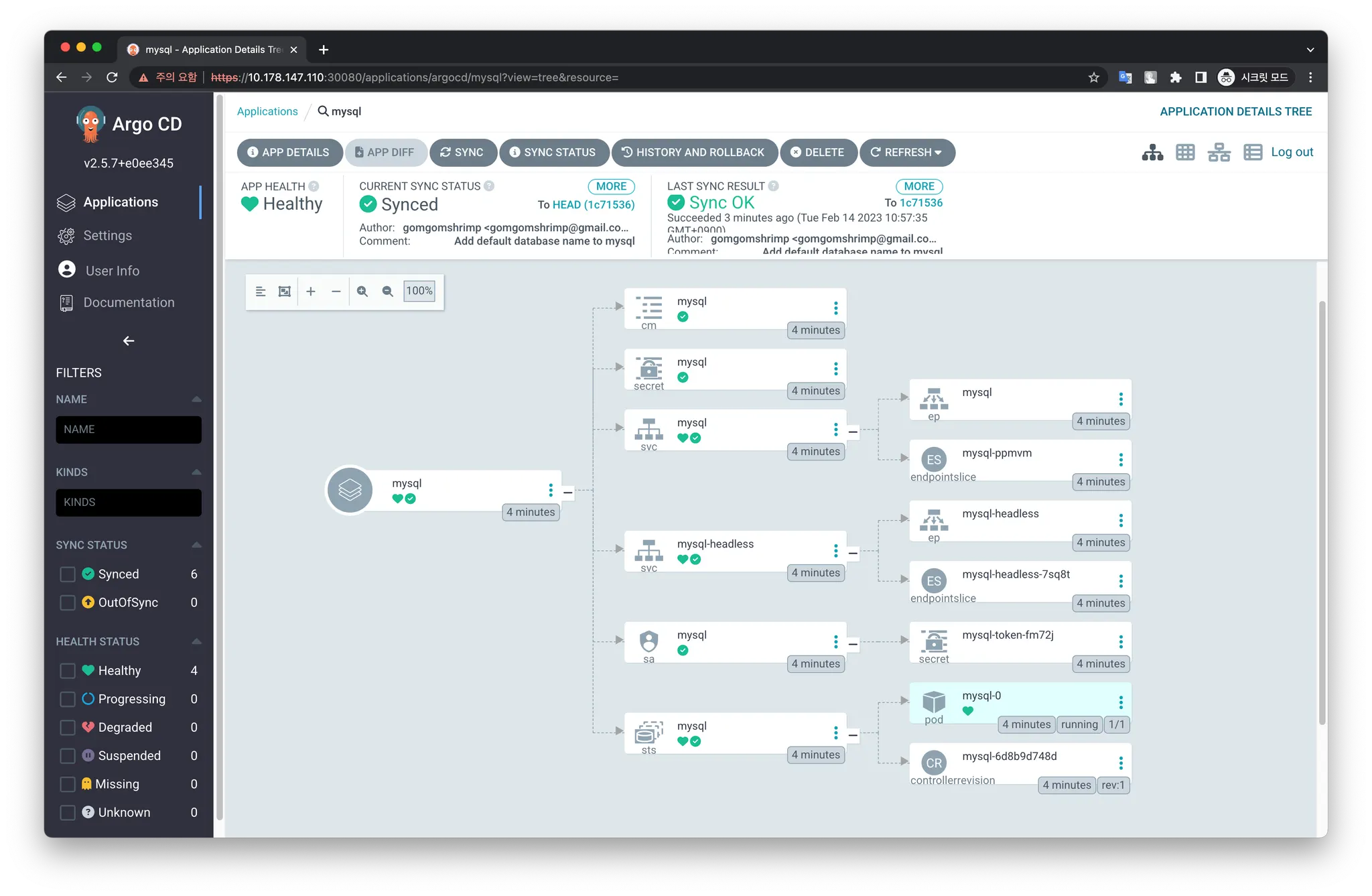 이제 mysql-test application 리소스 내부 구조를 조금 더 자세히 살펴보도록 하겠습니다.