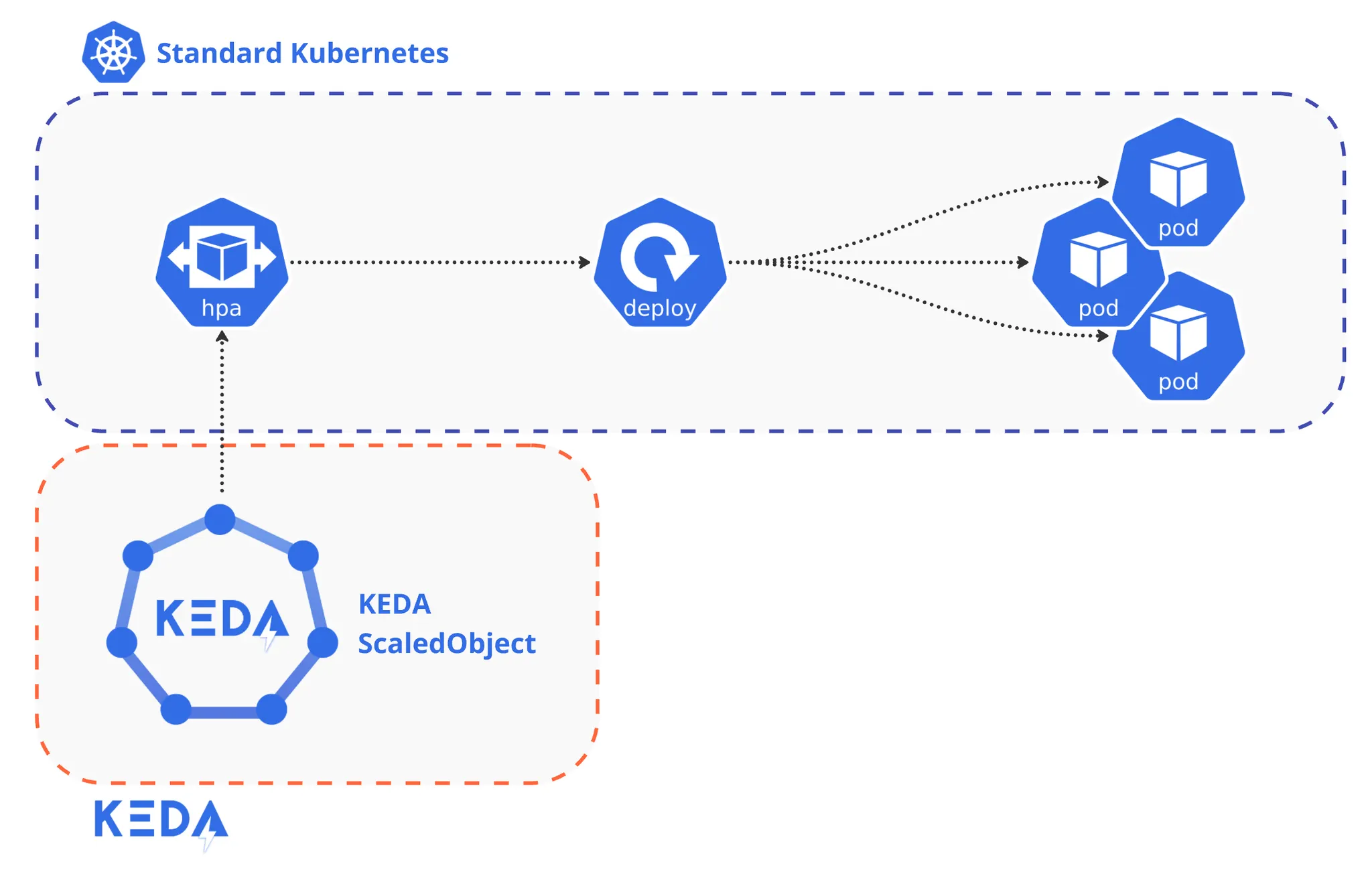 여기서 눈여겨볼 것은  KEDA는 기존 Kubernetes 클러스터의 HPA를 교체하는 방식이 아닌, HPA와 함께 동작하며 오토스케일링 기능을 확장한다는 점입니다.