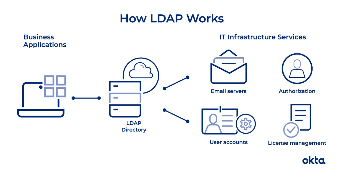 앞서 언급했듯이, 일반적으로 LDAP은 이메일주소, 사용자의 이름, 비밀번호 같은 유저 정보를 저장하는 디렉토리 서비스에 사용됩니다. 대규모 조직에서는 대부분 디렉토리 서비스를 구성하고, 사용자 인증 및 권한 부여 등에 주로 사용합니다.