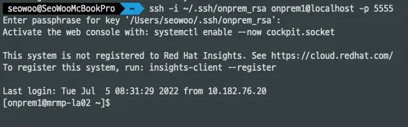 ssh -i ~/.ssh/onprem_rsa onprem1@localhost -p 5555