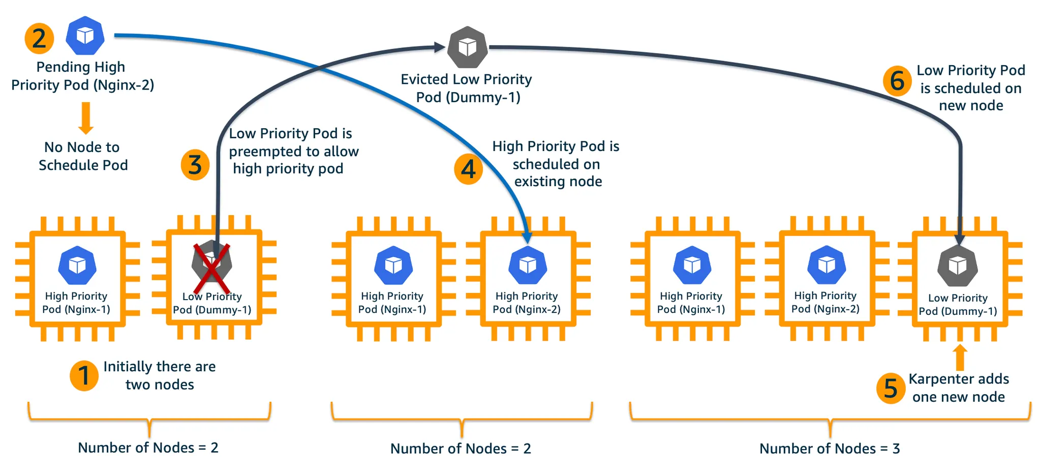Karpenter의 Over Provisioning의 핵심은 위에서 설명한 PriorityClass입니다.