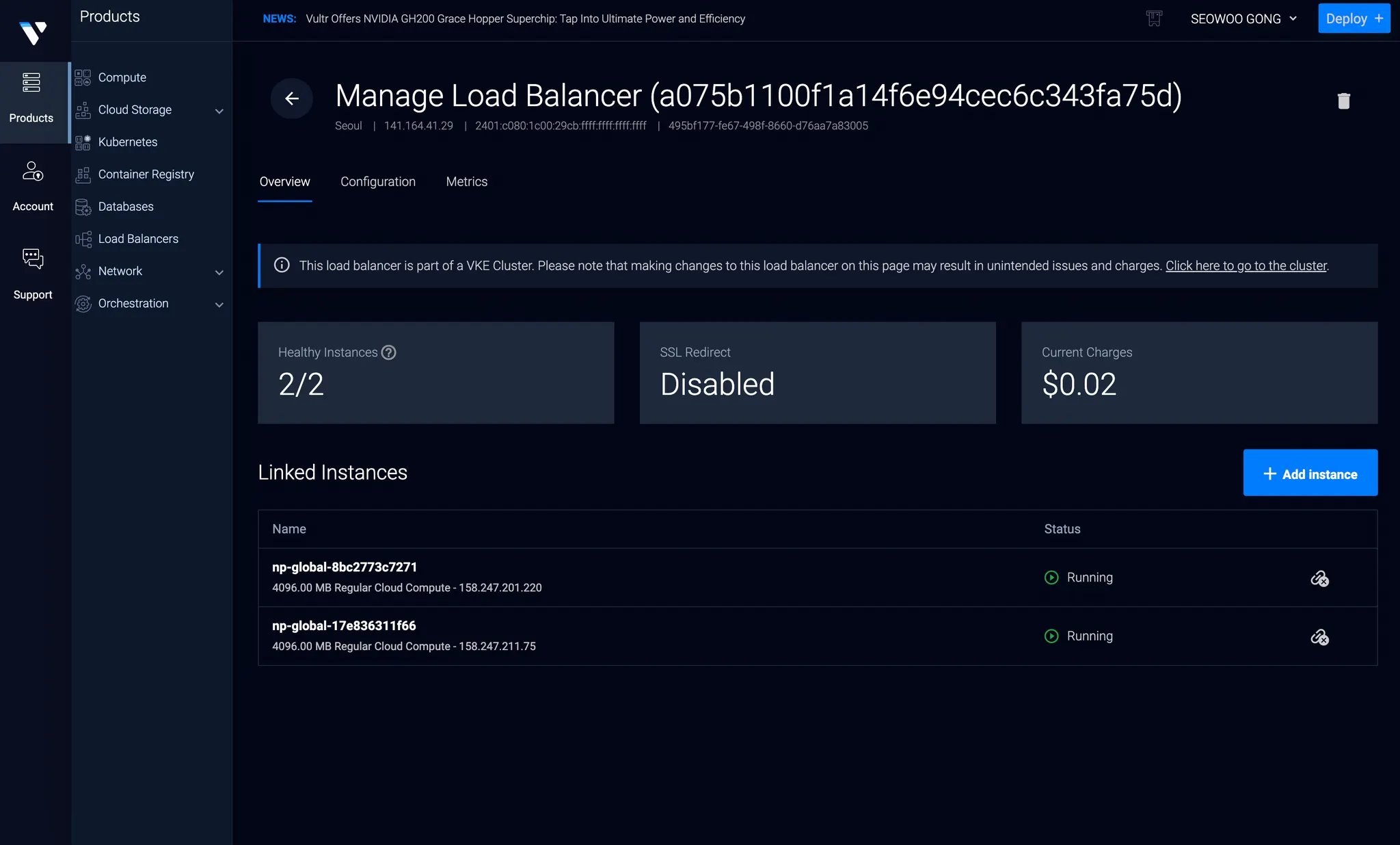 과금 구조에서 설명했었는데, Vultr의 LoadBalancer 서비스는 하나당 한 달에 10 USD를 지불하면 사용 가능 합니다.